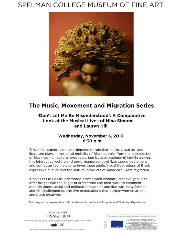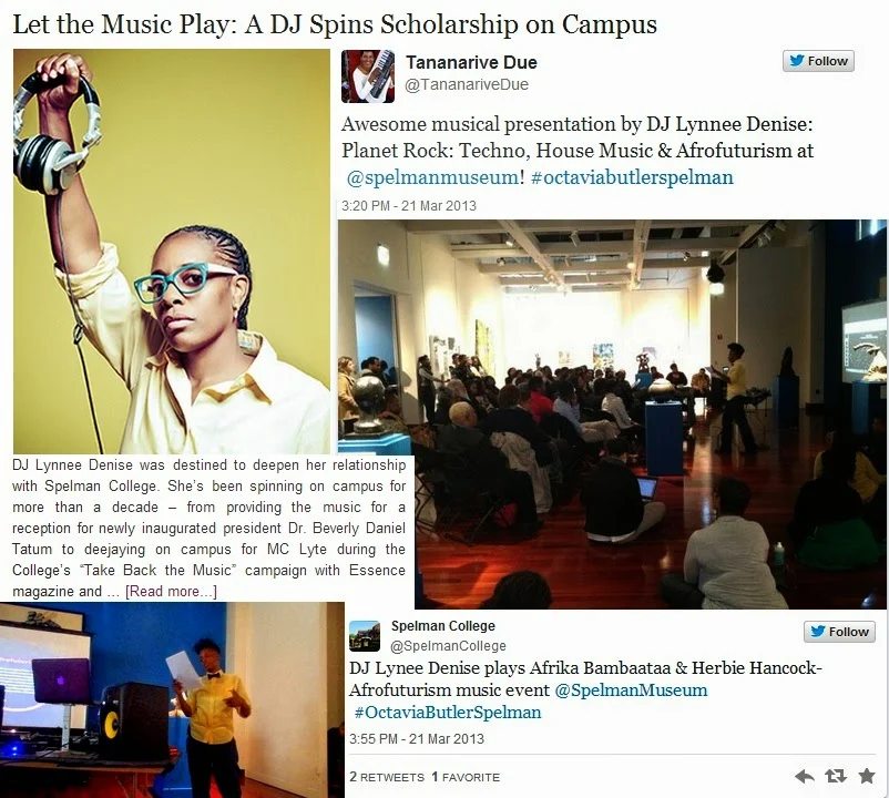 Impressed by the Planet Rock: Afrofuturism, Techno and House talk, Spelman administrators conspired to bring DJ Lynnee Denise back to the college to present a series of Performance Lectures. (Event flyer below).